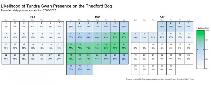 - Download the Tundra Swan Migration Probablity Calendar – 100 KB (small) PDF file